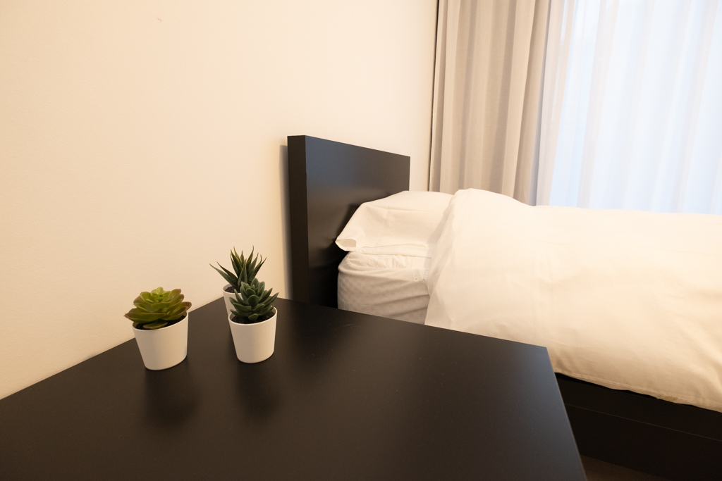 bemeubeld: ingemaakte kleerkast, bed met matras en matrasbeschermer, bureau, bureaustoel, nachttafel