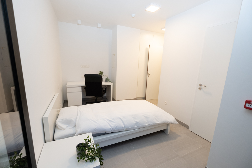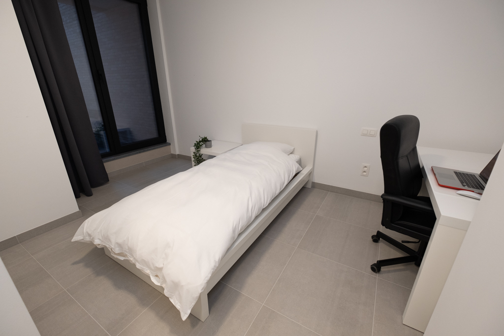 bemeubeld: ingemaakte kleerkast, bed met matras en matrasbeschermer, bureau, bureaustoel, nachttafel en extra opbergkast