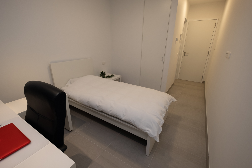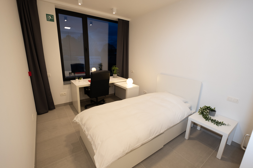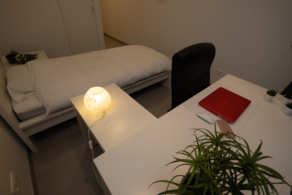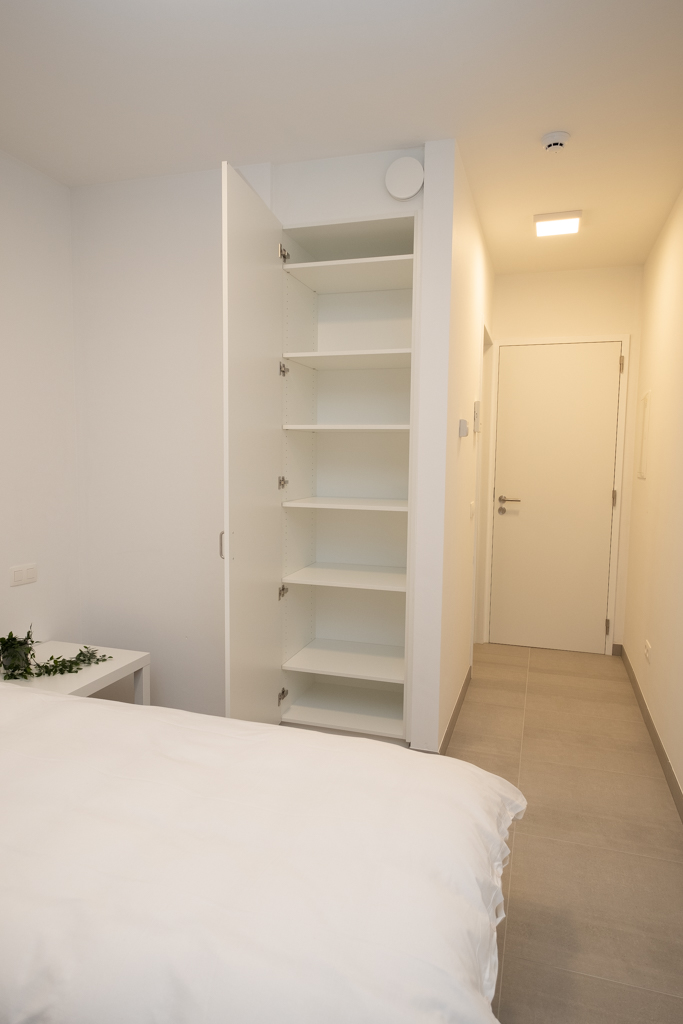 bemeubeld: ingemaakte kleerkast, bed met matras en matrasbeschermer, bureau, bureaustoel, nachttafel en extra opbergkast